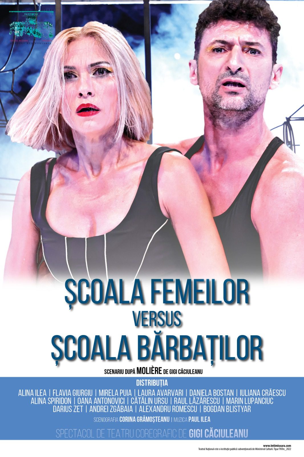 Cum am putea aniversa 400 de ani de la nașterea lui Molière mai bine decât printr-un spectacol Molière? Cum am putea dovedi mai clar că Molière ne este contemporan în spirit, ba fiindcă a luat-o înaintea timpului său, ba fiindcă lumea a mai întârziat pe ici, pe colo decât printr-un spectacol Molière? Și cine ar  putea s-o facă mai bine decât cel care a înțeles și a dat formă, la patru secole după Molière și „Regele Soare”, dansActorului, marele coregraf Gigi Căciuleanu, care „traduce” cu imaginația sa ludică și profundă vocea unică a marelui dramaturg francez? ȘCOALA FEMEILOR versus ȘCOALA BĂRBAȚILOR este o suită de istorii despre această luptă căreia civilizația, cu toate marile ei cuceriri, încă nu i-a dat de capăt după 6000 de ani de patriarhat. Povești fermecătoare despre mici iubiri, mici infernuri domestice, mici nedumeriri și multe subterfugii, mici războaie și diplomații repun în discuție, cu lucidă bonomie și cu grație fără milă, o societate care încearcă și tot încearcă să îndrepte o balanță în care nedrept stăm despărțiți de-atâta timp – femeile de-o parte, de alta – bărbații.
